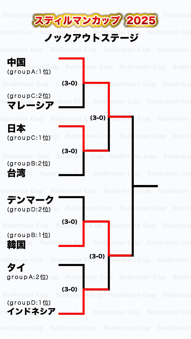 7日目、準決勝・ノックアウトステージ(決勝トーナメント)、日本代表は中国を相手に3-0で敗退しました
